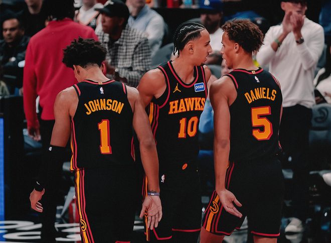 但还有一支球队更有趣,就是老鹰。休赛期老鹰交易来波尔津吉斯,先签后换从森林狼得到亚历山大沃克,包括签下肯纳德,搭配原有的杰伦约翰逊+状元里萨谢+丹尼尔斯这些天赋年轻人,整体实力不容小觑。但开赛前四场比赛,也就是球队老大特雷杨健康状态下出战的比赛,老鹰1胜3负,特雷杨场均20.8分9.5助攻,第五场比赛对阵篮网打了7分钟,结果遭遇右膝内侧副韧带扭伤,至少休息四周。从特雷杨出战的140分钟来看,他的效率很一般,两项命中率低至37%+19%。特雷杨当下合同还剩2年,薪资分别为4600万+4897万(带球员选项)。