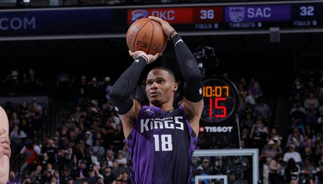 国王队球星拉塞尔威斯布鲁克,在此役拼尽全力。威少替补上场31分钟,12投3中,三分球7投1中,罚球7中7,得到了14分8板11助攻的准三双数据。威少在进攻端手感不佳,仅有25%的投篮命中率、远投命中率跌至14%。
